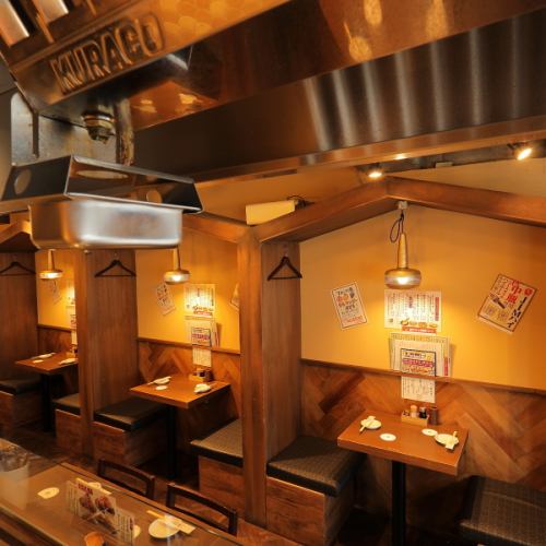 【半個室:2名×3卓】二人だけの空間で、周りを気にせず落ち着いてお話ができる半個室です。レトロ調で高級感のある店内で、流れるジャズが二人の時間をよりロマンチックに演出します。大切な方とのデートにぴったりの特別なお席です!