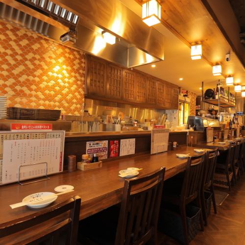 【カウンター席:12席】ゆったりとしたカウンター席は、お一人様でも気兼ねなくご利用いただけます。落ち着いたレトロ調の店内で、1960~70年代のジャズを聴きながら、こだわりのお料理やお酒をゆっくりとお楽しみください♪